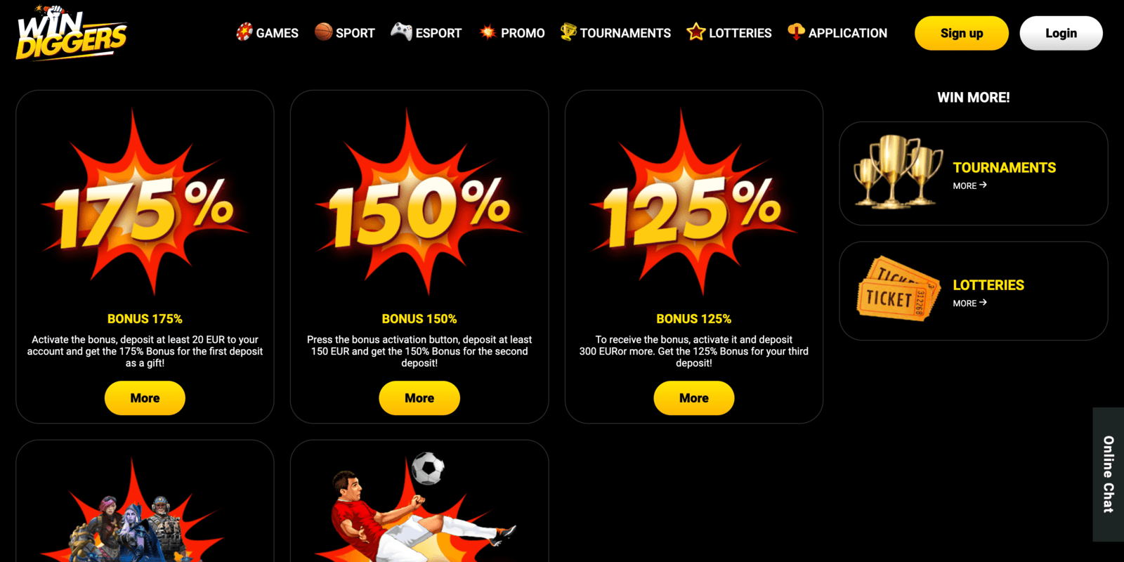 Win Diggers Gambling establishment thrills with its aesthetically enticing user interface and user-friendly layout, developed to make navigating basic for all players. The site features a distinct color pattern of yellow and blue, producing an inviting environment that attracts attention in the jampacked online casino market.